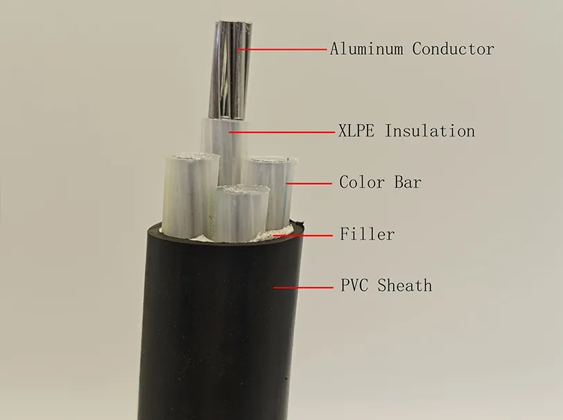 | Câble d'alimentation à gaine PVC isolé XLPE à conducteur en aluminium 3+1 conducteurs (0,6/1KV) | |||||||